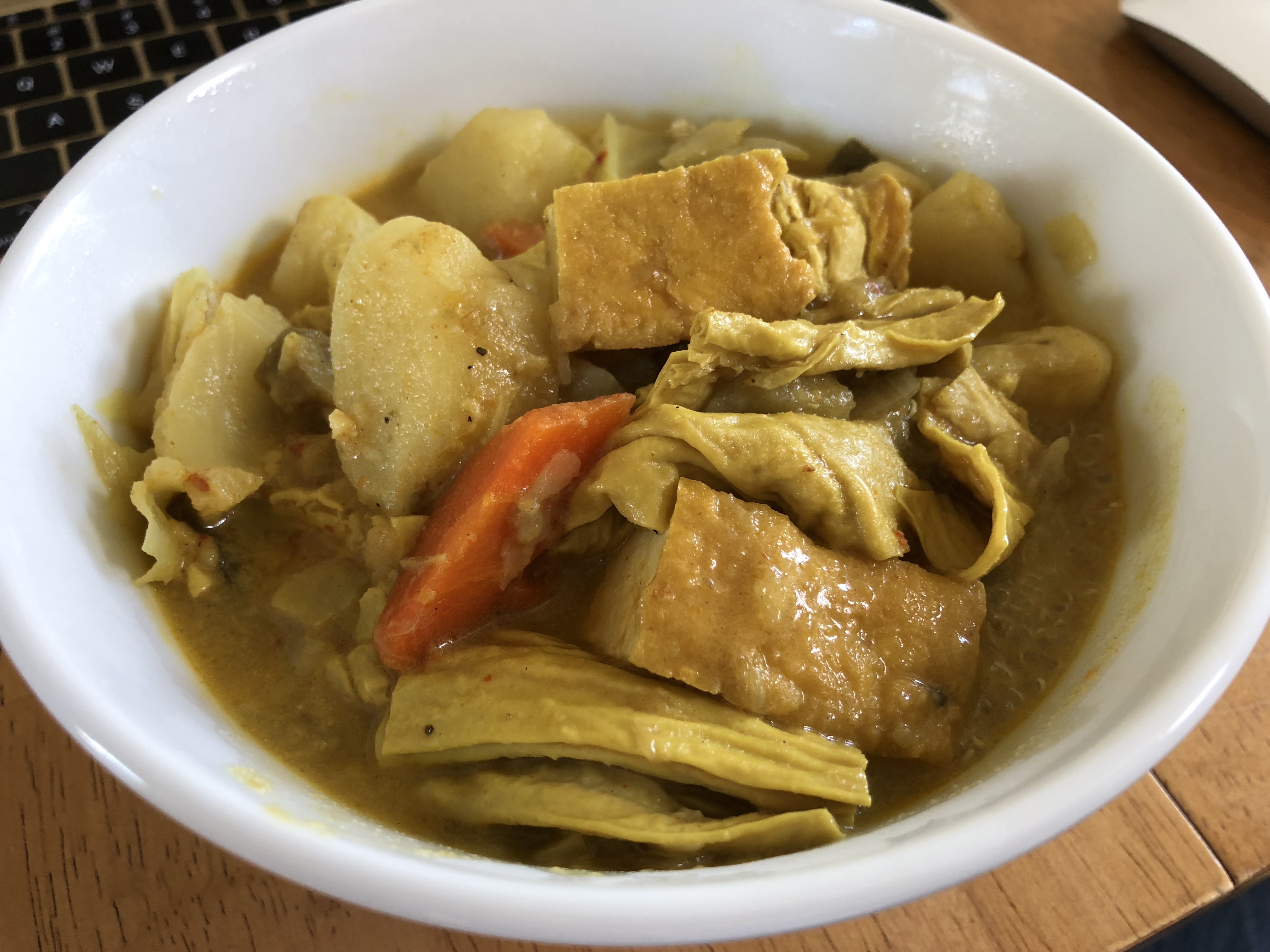 rice top with curry chicken and friend egg, 55 baht.