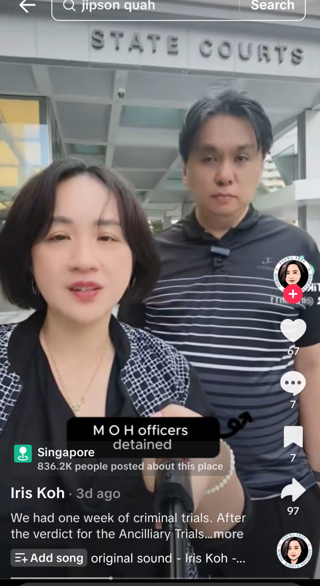 While iris had mentioned in the beedio that moh doesn't have the power to detain people, if the suspect wasn't about infectious disease leelated, IMHO they doesn't have a case for the supposingly detainment of loctor quah. They didn't handcuff nor locked him in a cell.