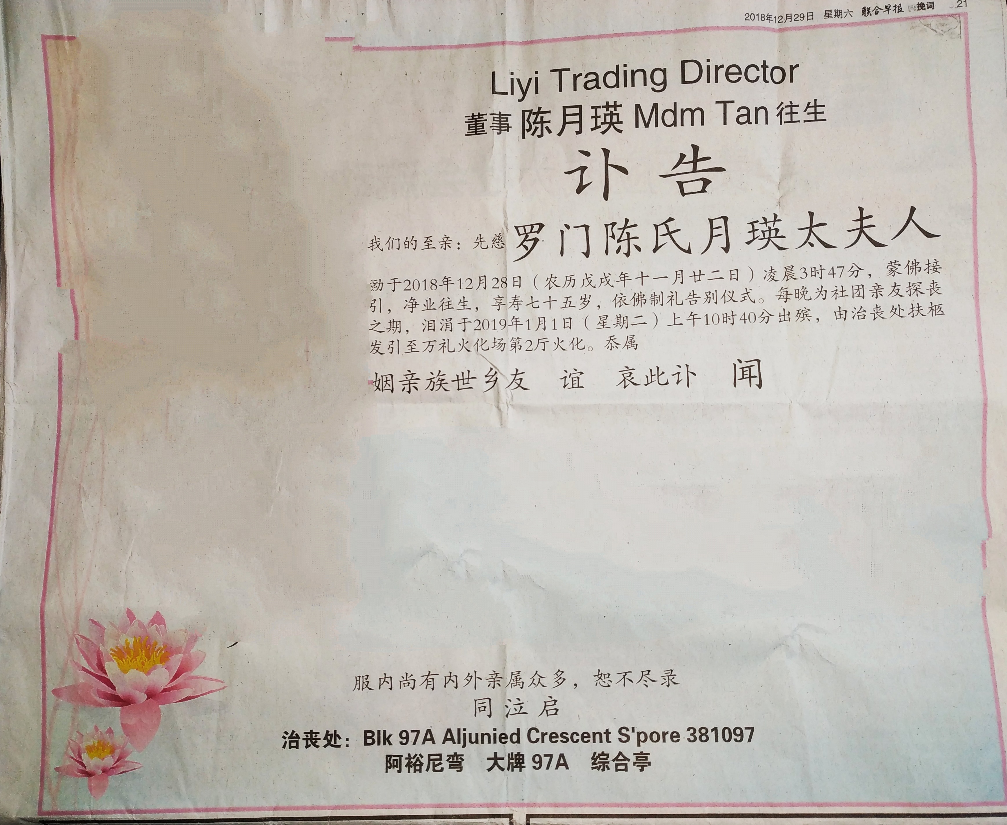 yes comfirm. very sad to hear this news of her passing on. Ah Soon is a very hardworking and capable young man . all the best to ah soon.