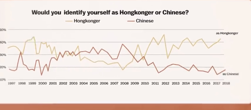 我哋從來冇話我哋係鬼佬,我哋係中國人沒錯,但係香港唔係支那國嘅一般省成,所謂一國兩制,我哋有唔同嘅制度,司法獨立,立法會獨立立法,但係當一切被剝奪又點承認一國如果冇咗兩制