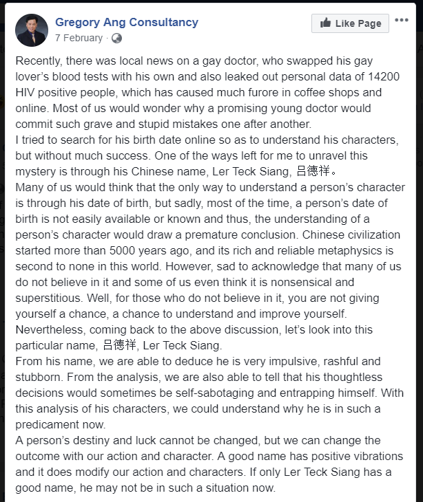 On the sixth day of Ler's trial, the medical doctor told a district court that he did not mention this prostatic massage services to narcotics officers as he was "not certain if it would constitute" an offence under Section 377A in the Penal Code.