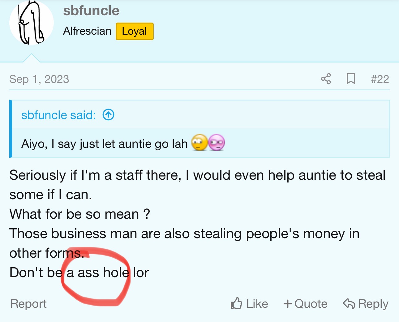 Same for me. I said I want to give you a fucking punch. Say is no use.i want action. I'm a man unlike you talk only and dare not.
