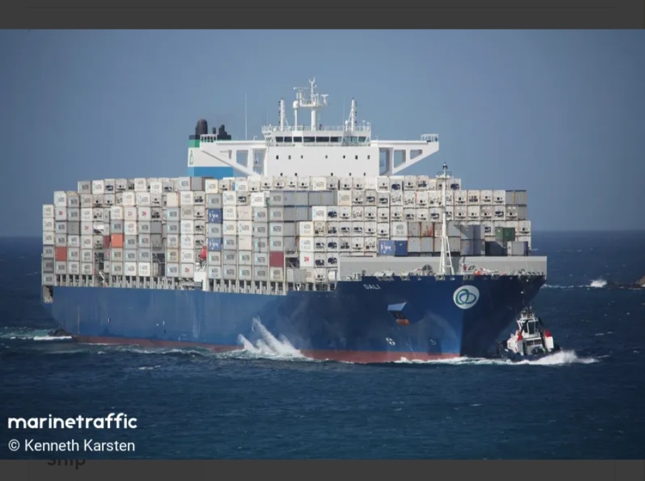 IMO number 9697428 MMSI 563004200 Name of the ship DALI Vessel type Container ship Operating status Active Flag Singapore Gross tonnage 95128 tons Deadweight 116851 tons Length 299 m Breadth 48 m Engine type MAN-B&W Engine model 9S90ME Engine power 41480 KW Year of build 2015 Builder HYUNDAI HEAVY INDUSTRIES CO. LTD. - ULSAN, SOUTH KOREA Classification society AMERICAN BUREAU OF SHIPPING Home port SINGAPORE Owner OCEANBULK MARITIME - ATHENS, GREECE Manager OCEANBULK MARITIME - ATHENS, GREECE Description DALI is a Container ship built in 2015 by HYUNDAI HEAVY INDUSTRIES CO. LTD. - ULSAN, SOUTH KOREA. Currently sailing under the flag of Singapore. It's gross tonnage is 95128 tons.