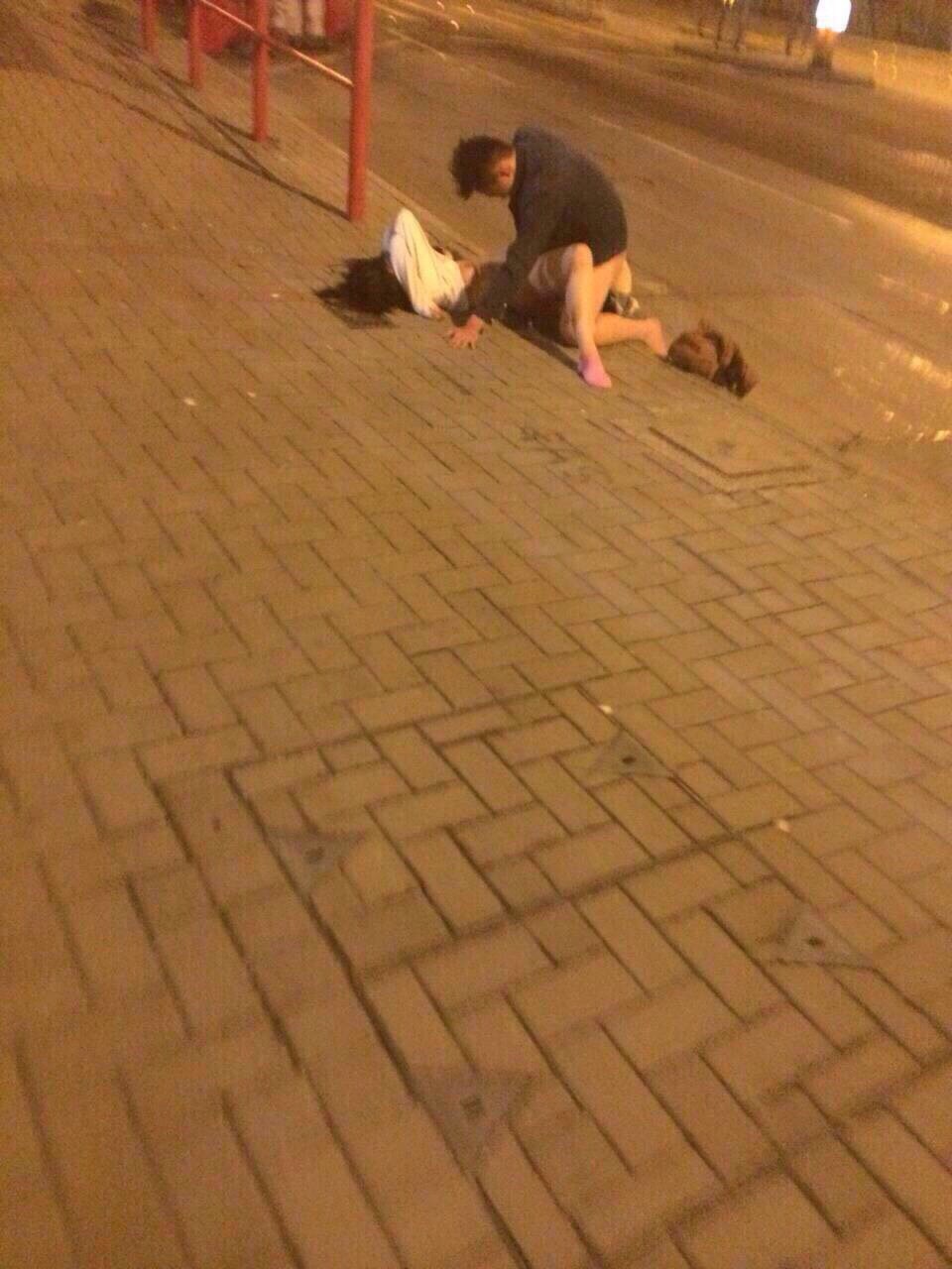 When officers arrived, the pair – who apparently had put on their clothes – were found sitting on the pavement with the woman holding the man around his waist, according to police.