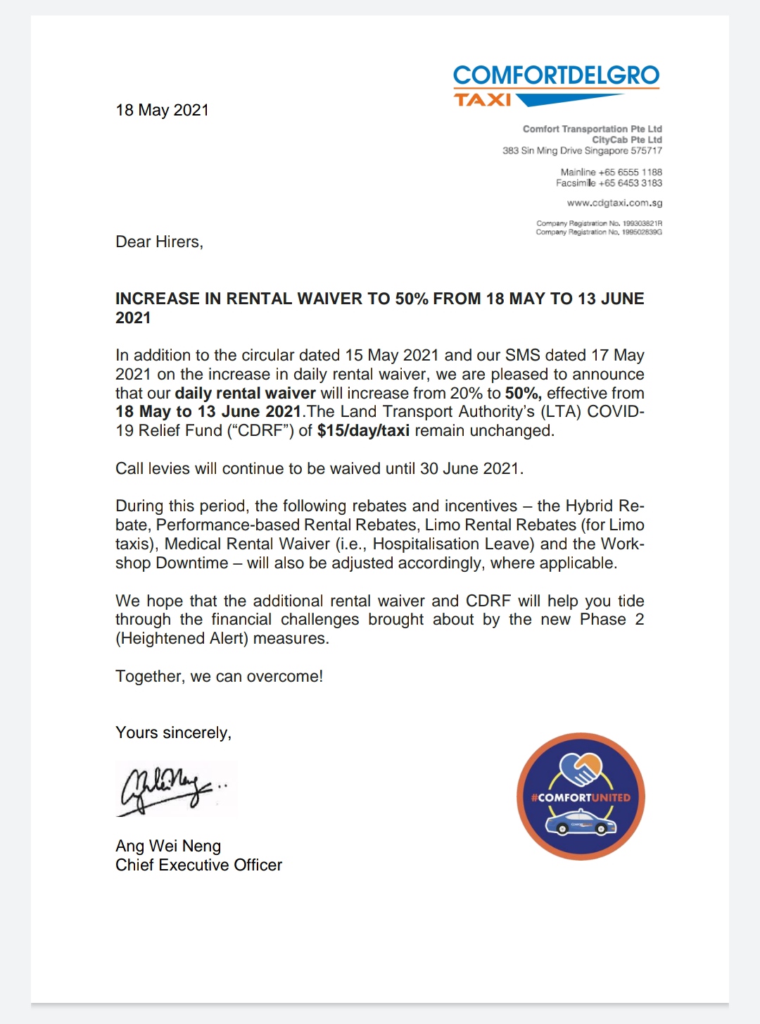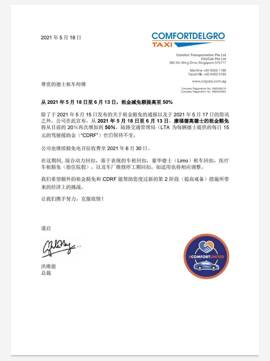 try going to Comfort Taxi CEO 's office at sin ming for help