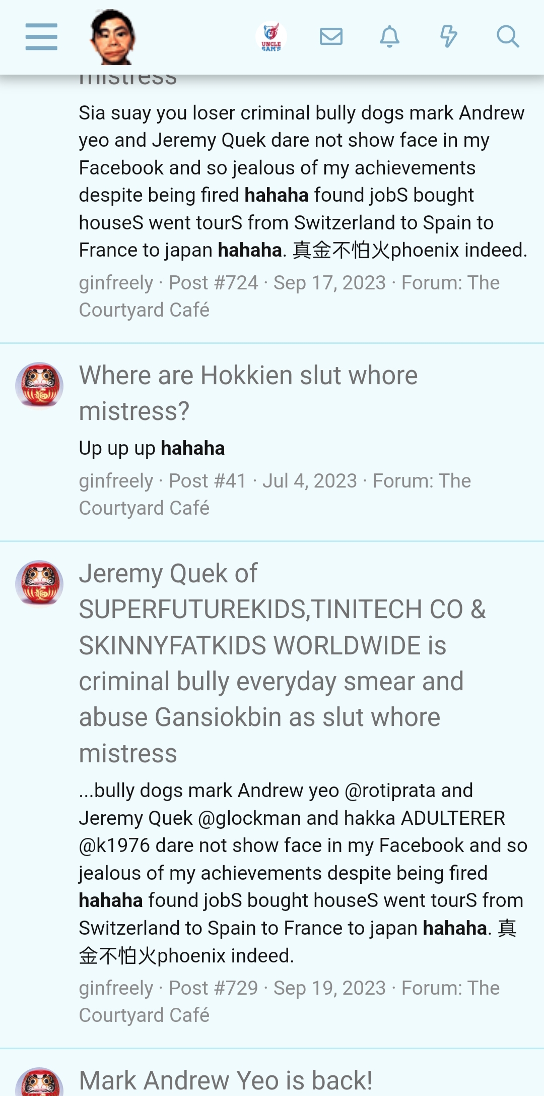 You despicable Malaysian Cantonese dog @nightsafari clone telling lies again. That’s not what I said but you said my virginity depend on other people.Hahaha cannot find the hole ... Hahaha therefore I am a virgin ...