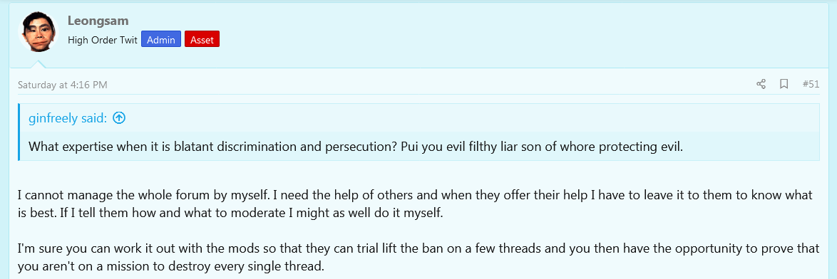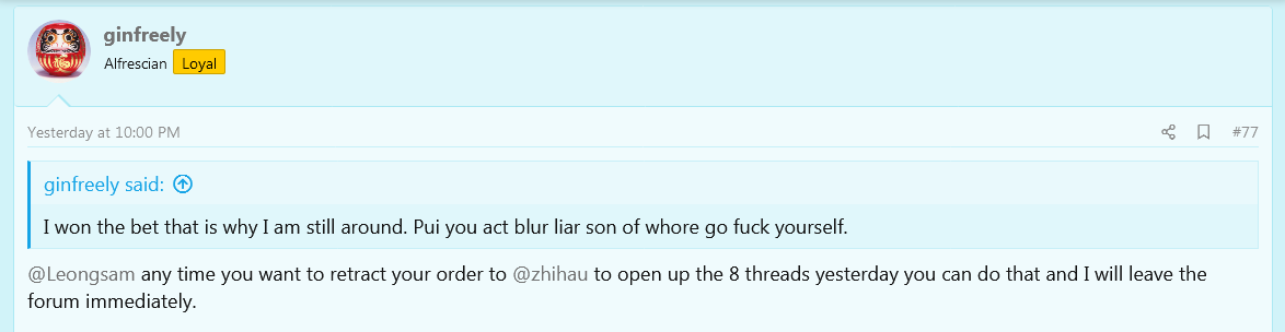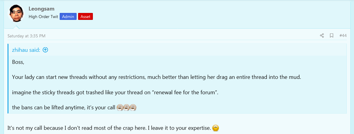 1. Less than two days ago (on Saturday afternoon), our dearest @Leongsam said (in another thread):