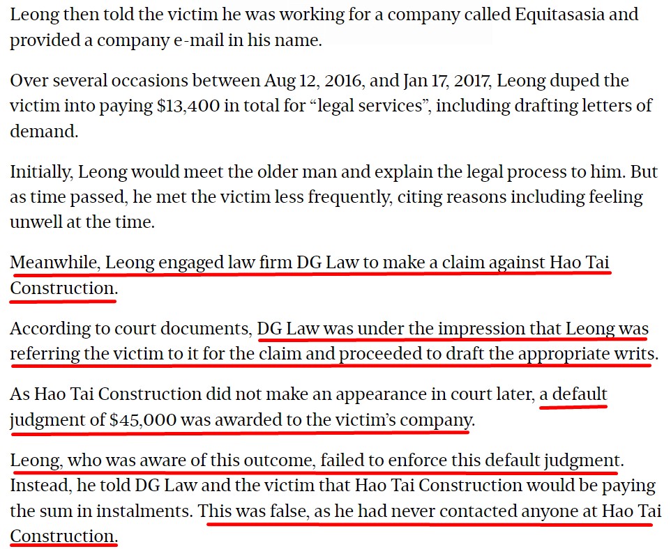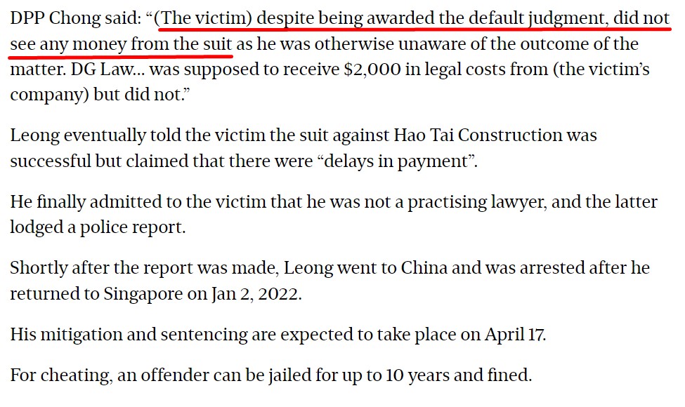 The law firm handling the case would have had particulars of the victim's Company, and through a simple ACRA search, the particulars of the 59-year old victim who is the Director of the victim's Company. The law firm would have had given copies of the correspondence, including the judgment to the business address of the victim.