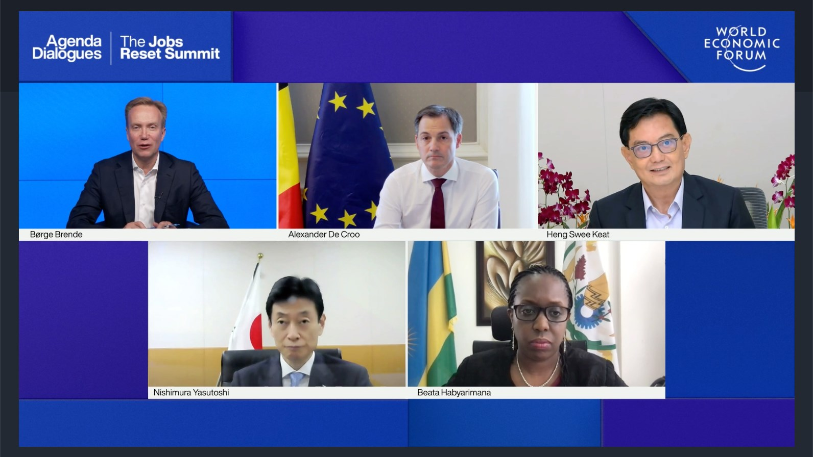 Took part in the World Economic Forum Jobs Reset Summit 2021 last evening. I had a lively exchange with many distinguished participants — including WEF President Børge Brende, Belgium PM De Croo and other global leaders.