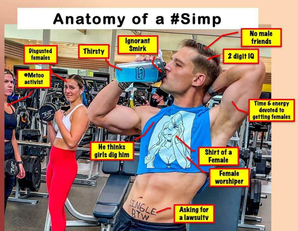 Translation? The word simp is meant to troll young men for doing anything for a girl to get some action he supposedly deserves.