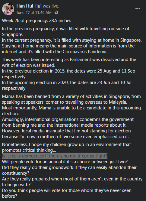She isn't wrong technically. However, there is no proportional representation in Sinkieland, and the pappies have gamed the system since the 1980s in such a way that multi-corner fights equal suicide for the opposition.