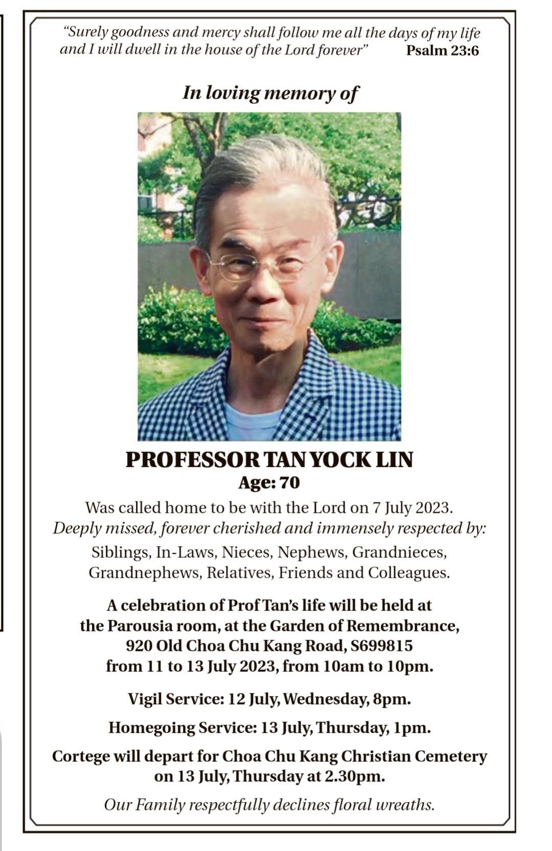 ...Prof. will dwell in the House of the Lord forever ...