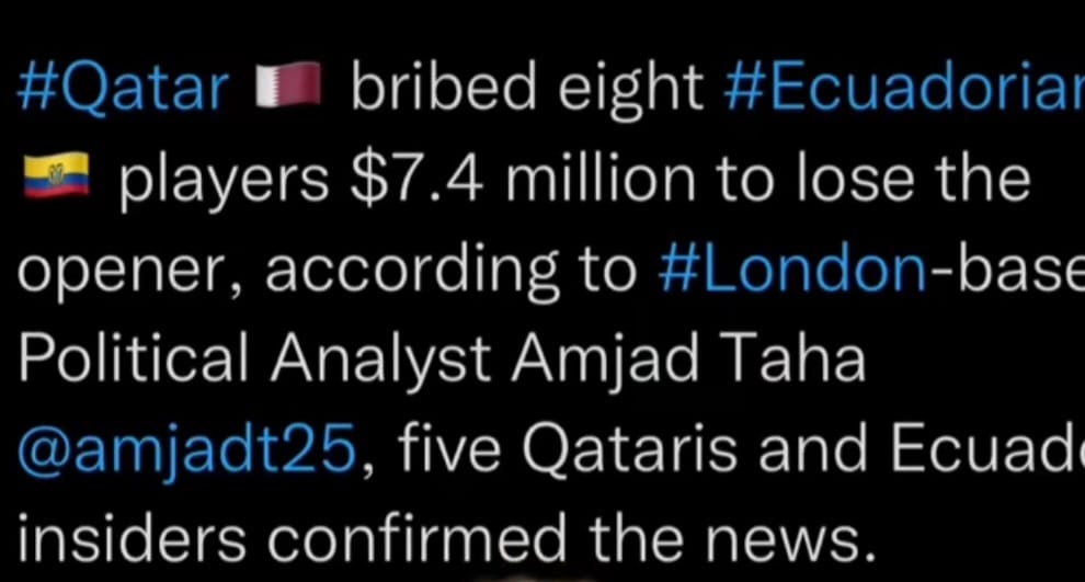 Rumors have been swirling that some Ecuador players are on the take with monies and sex to give the host Qatar a historical first win in the World Cup..wait for more information from the betting market..