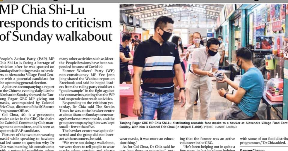 - PAP MP Dr Chia Shi Lu denying he flouted the CB measures when he visited Alexandra Village with an entourage of reporters on 12 April