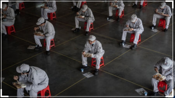 my take is that they're surrendering to authority... they willingly chose to give up their freedom and "sanity". kinda like people on a tropical island...