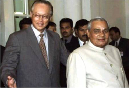 Prime Minister Goh Chok Tong with Prime Minister Atal Bihari Vajpayee in Singapore on 8th April, 2002