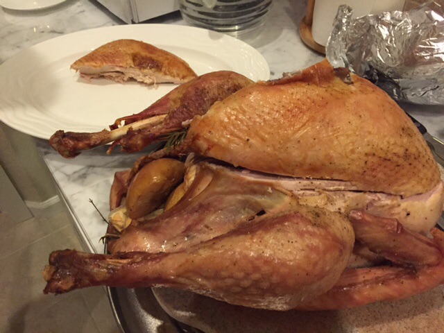 oops! i forgot to take a pic when the turkey came out of the oven. started carving the turkey then realized it.