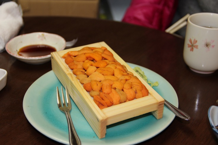 Lunch today, uni (sea urchin) sashimi is very rich and delicious