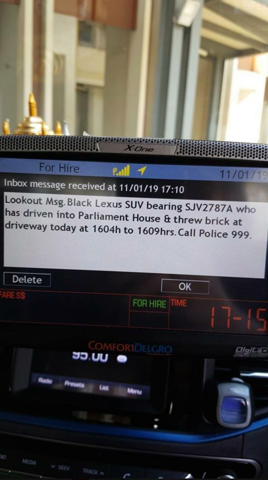 KNN this inbox msg look like a tipoff sabo msg asking people to lookout for black lexus and call 999 or already been thrown KNN