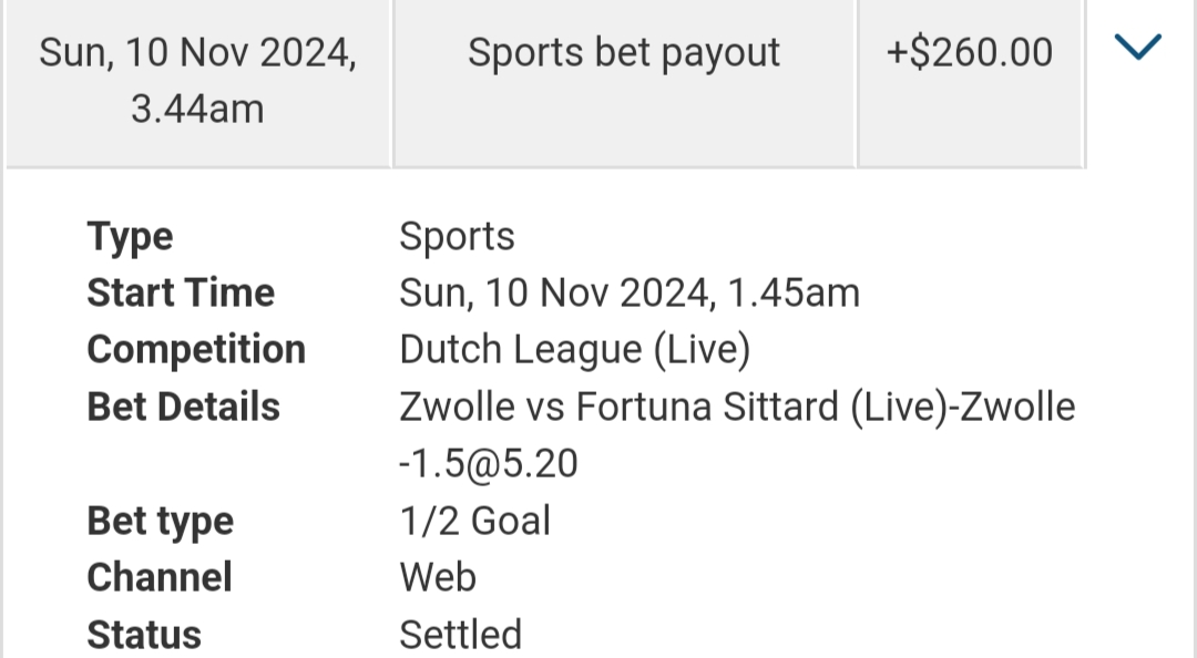 But I knew it will not score becos of the original secret code already showed more likely Zwolle will open the - 1.5goal