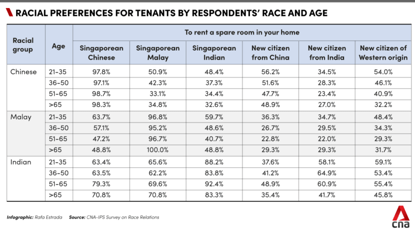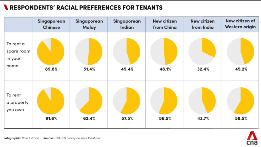 SINGAPORE: In choosing a tenant, a majority of Singapore residents said they would prefer to rent to someone of the same race, according to a survey on race relations conducted by CNA and the Institute of Policy Studies (IPS).