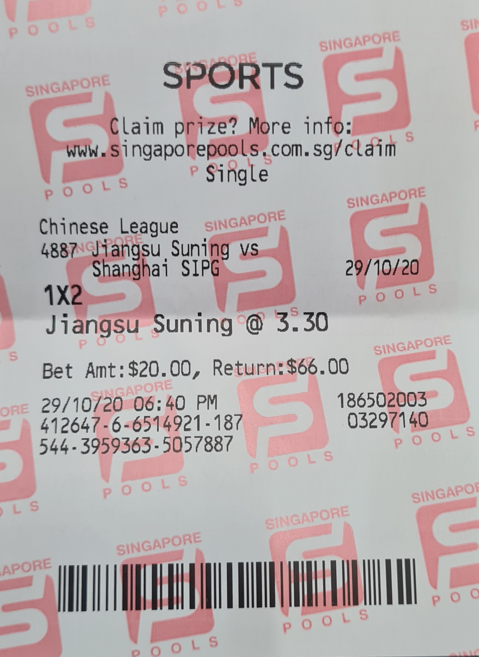 KNN this time my uncle don't want to let sg pool know what he bet so he have to go outlet KNN at the point of time the odds were 3.30 3.10 2.05 KNN