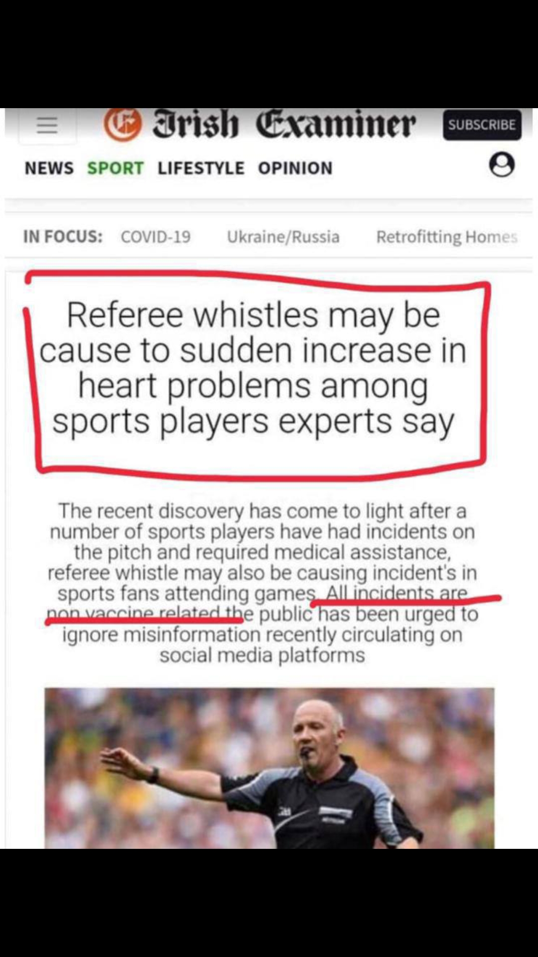 Next time admitted to hospital for heart attack. Patients family members asked Doc, what can be the cause ? Your husband blow whistle, right ? That's why lah.....Like that, all those Singapore Philharmonic Orchestra who played wind instruments how ? Those Secondary boys school bands who blow big trumpet How ? All must also kena heart attack lah !!Thank goodness it's caused by whistles and not vaccines.