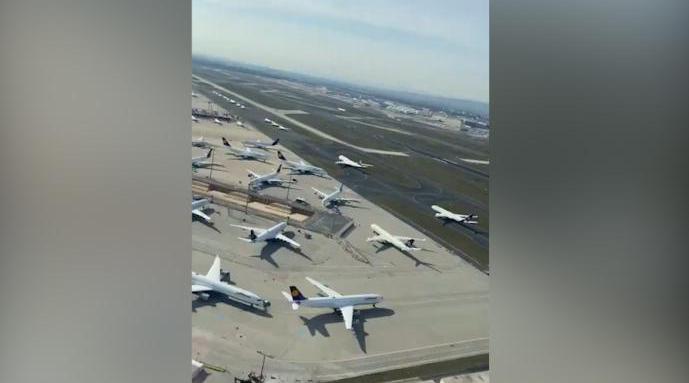 00:01:00视频-网友航拍法兰克福机场停满飞...
