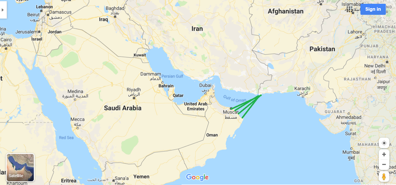 Airports, ports, airbases in Oman and Pakistan connected.