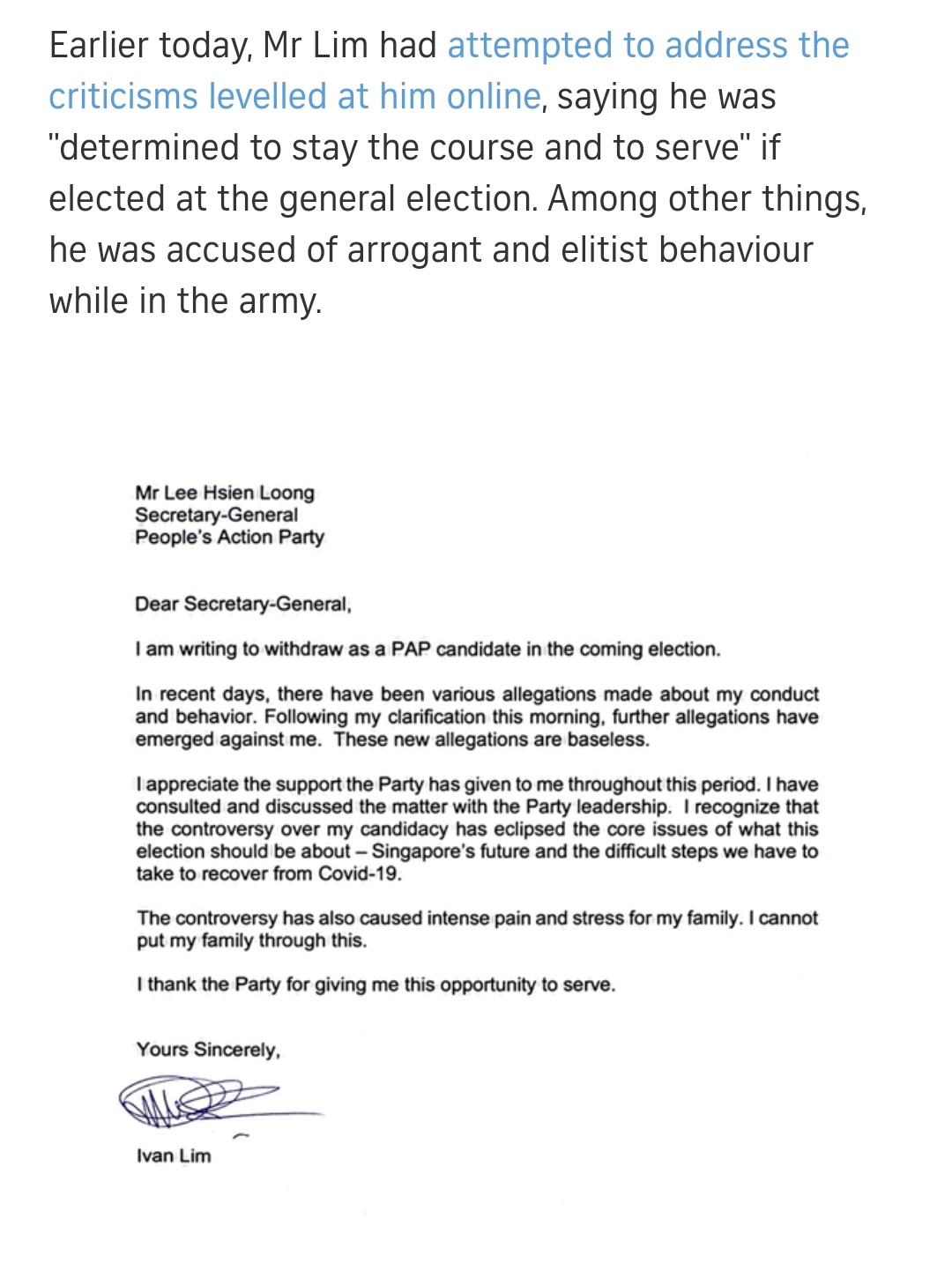 sg means supreme generalissimo.wah he wrote to SG Lee Hsien Loong! But how come don't address him as SG BG (Ret) Lee Hsien Loong?