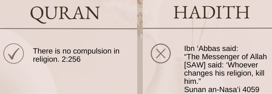 Here's a contradiction in the quran and hadiths. Guess which teaching vast majority of moslem scholars decided to follow - 'tick' or 'X' ? Hint below