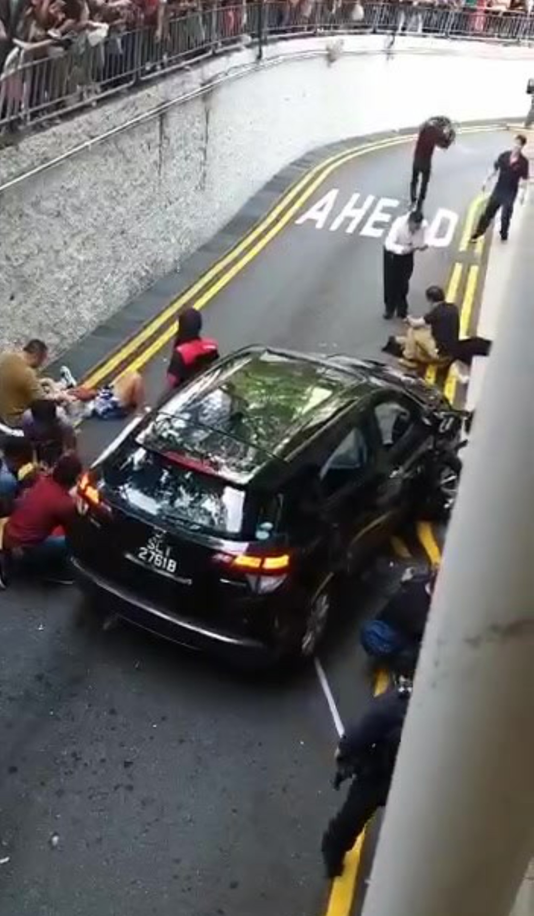 This Pinay climbed over the railing to rush to her injured 好姐妹, I doubt Sinkies would show much friendship.