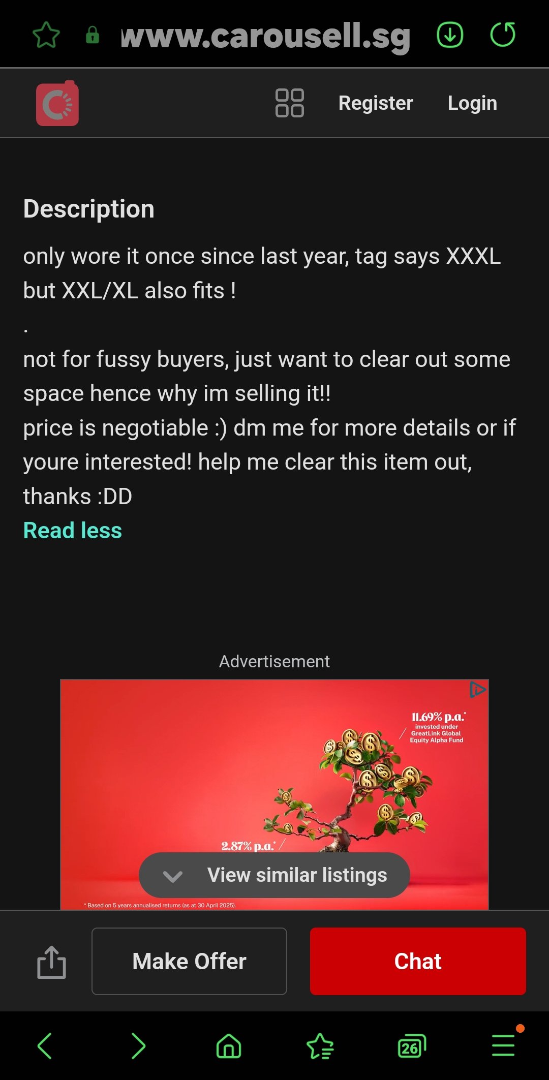 The description says,,Worn it once since last year, tag says XXXL but XXL/XL also fits !