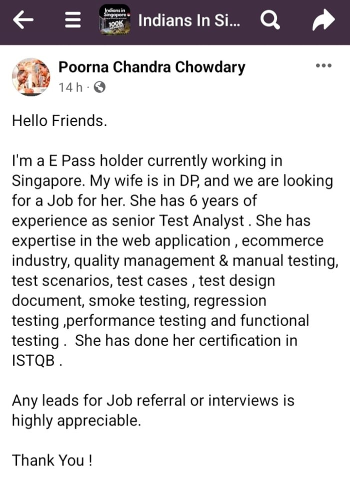 why didn't he go see his PAP MP during Meet the People session? I am sure they are happy to arrange a job for her.