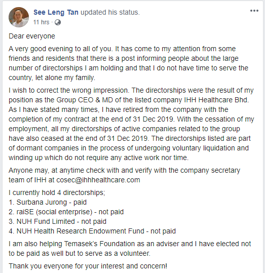 Hence, SRSP would like to seek clarification from the PAP leadership whether this is indeed true. If yes, why this piece of information was not made known to the press or public when he was introduced as their party new candidate for GE2020