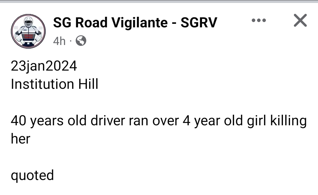 [Sg] - Toddler Girl dies after car accident at River Valley, parents appealing for witnesses