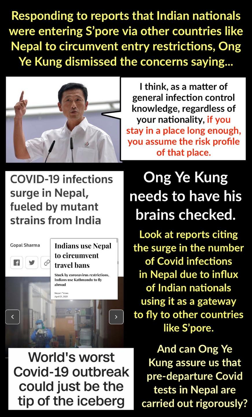 A traveller who has left India but stayed in another country before flying to Singapore would not have the same level of risk as someone who came directly from India, said Transport Minister Ong Ye Kung.
