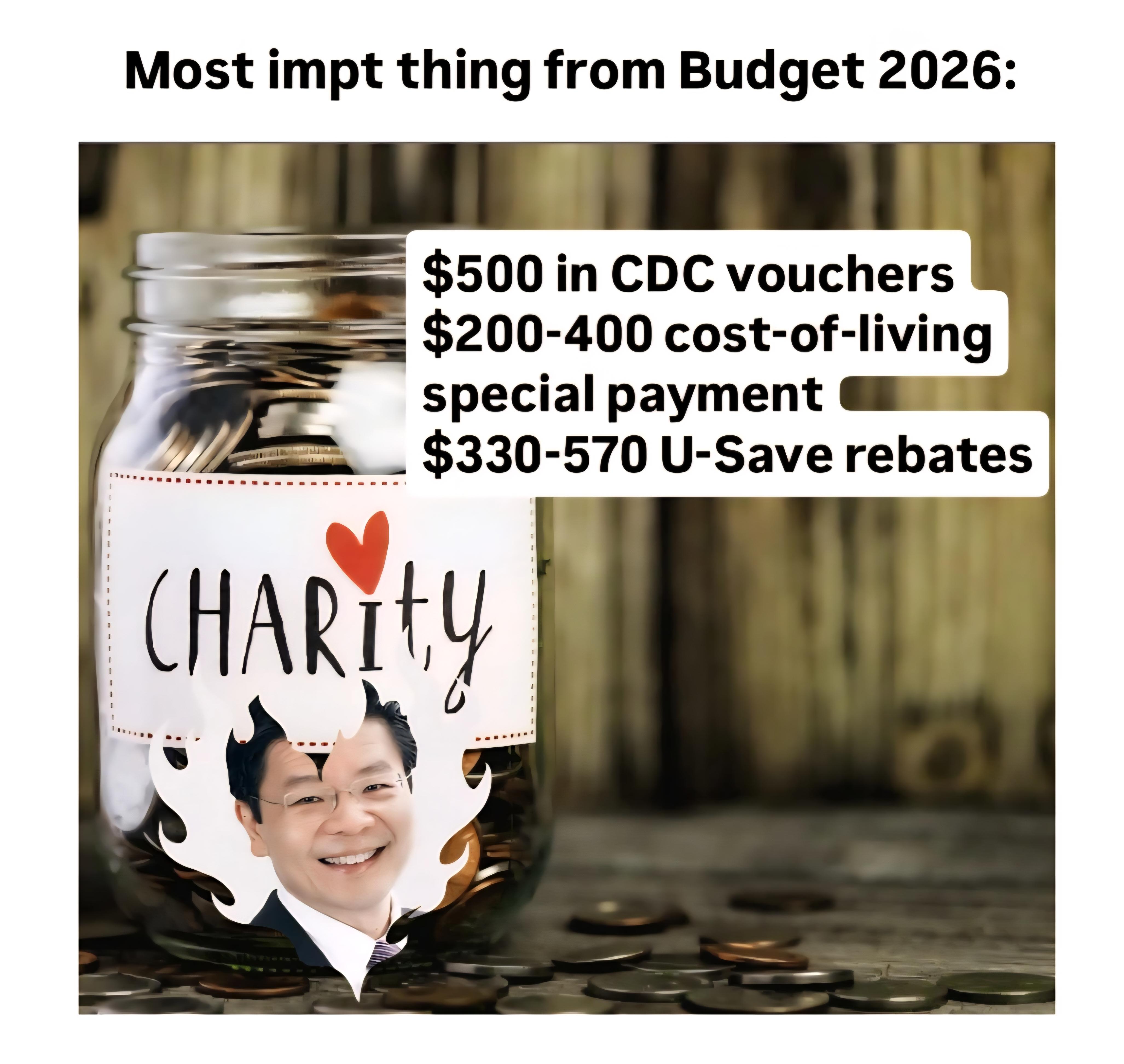 Hdb squatters disappointed.Knnccb to laolan wong !!!That's all folks. Wait for 2027 Budget to see if there are more CDC vouchers.![]()