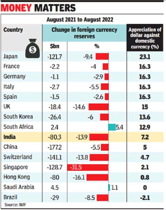 - 31.5% reserves gone. Implication is that total reserves were only 408 bn at 2021? Either way, that's almost 1/3 of reserves gone. quite a shocking number.