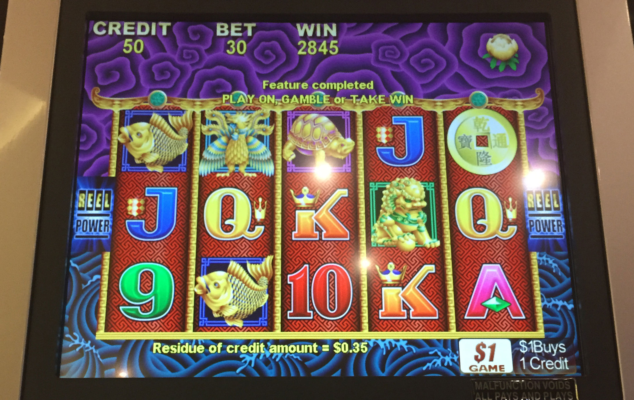 Found a CC machine to play finally, and was basically going up to $600+ with $200 inserted, and went back down to $50 before I started to have a nice run of bonus rounds which got me back to $500+ and had a really nice hit of 9 purple fish to win 1.6k!. (This is my biggest win on CC).
