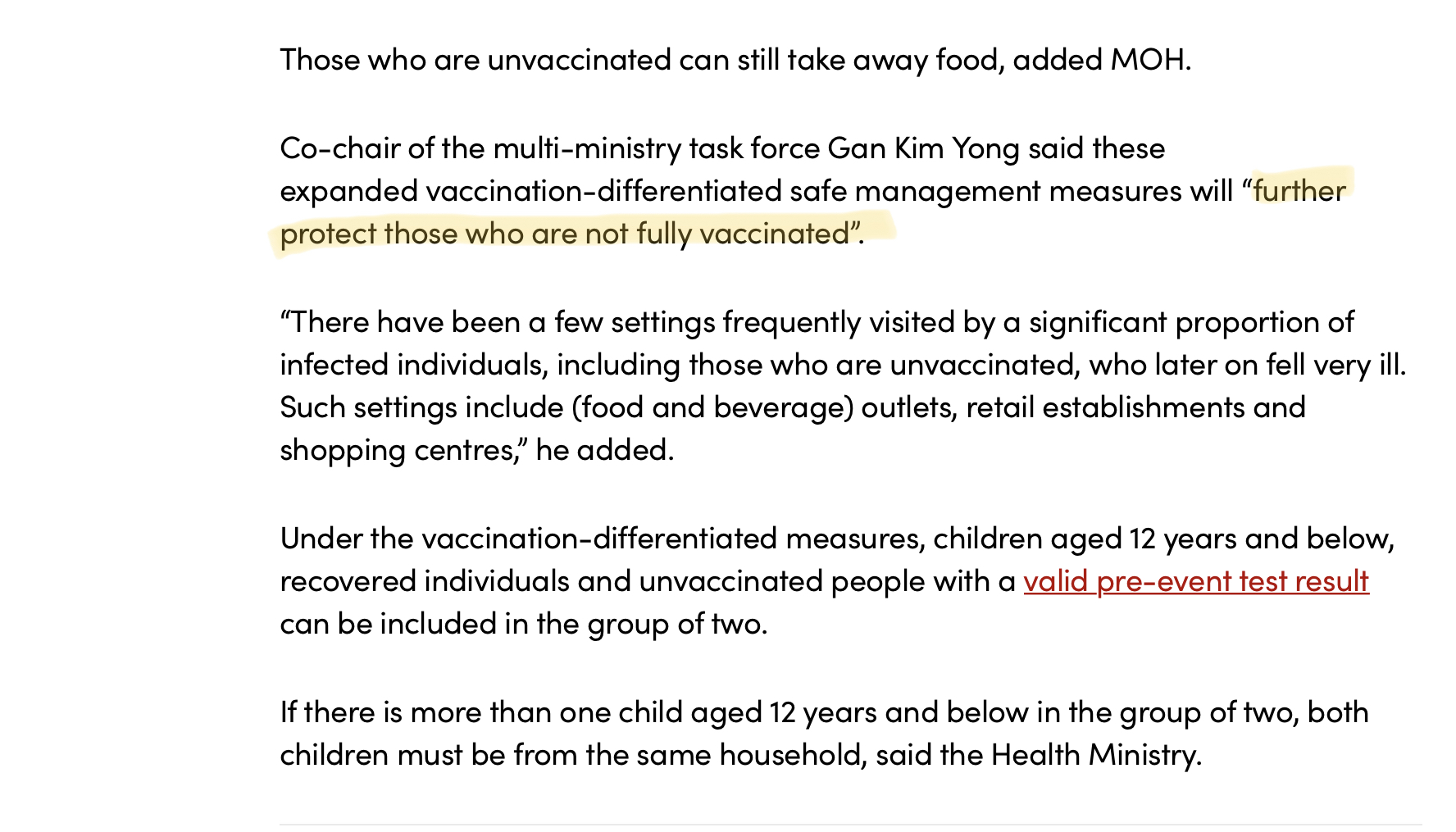 Well, at least the unvaccinated can still enter a mall... provided they show a negative test status.https://www.channelnewsasia.com/sin...on-status-hawker-centres-coffee-shops-2232741
