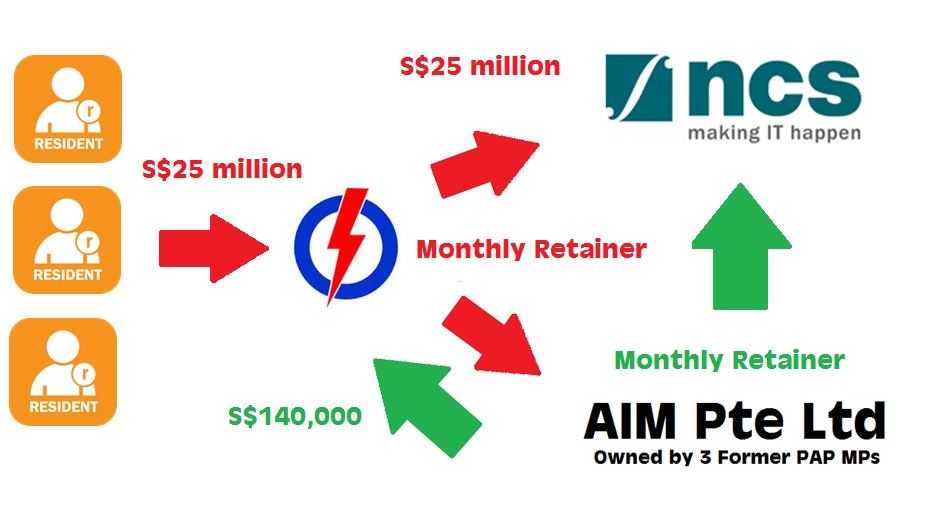 AIM was a $2 paid up capital company who has No Full Time Staff (except for 3 directors who are also ex-PAP MPs and 2 Part timer), No Website, No Hardware, No Software, AIM doesn't even have its own mailing address (its address was the same as the PAP’s headquarters’ in Bedok), Yet it was deemed qualified to meet the stringent criteria set by the 14 PAP town councils to be worthy of being awarded the contract to purchase the computer system for just $140,000 (where the $140,000 came from was never explained) which cost almost S$25 million, funded by monthly S&CC collections from residents.