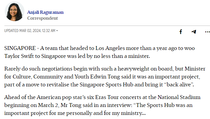 Serious Tiagong, Edwin Tong led multi-agency team to US to help bring Taylor Swift to S’pore for 6 concerts - 2 March 2024