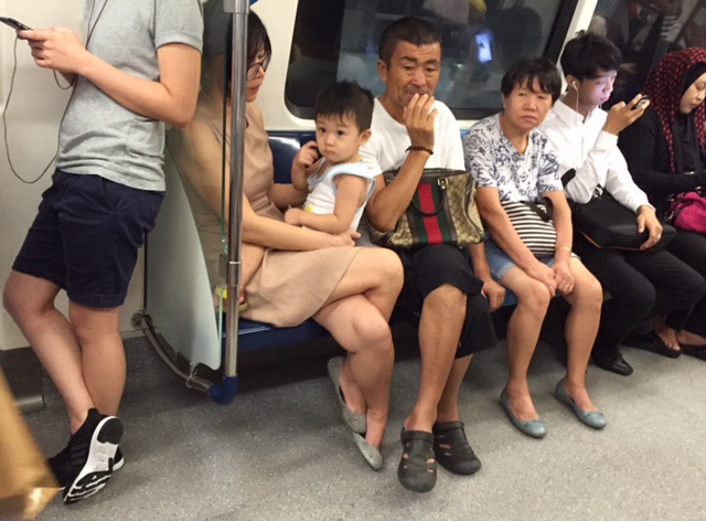 ah tiong pek managed to show off to all on the mrt train today a gucci bag being clutched with a death grip on his pelvis. :D