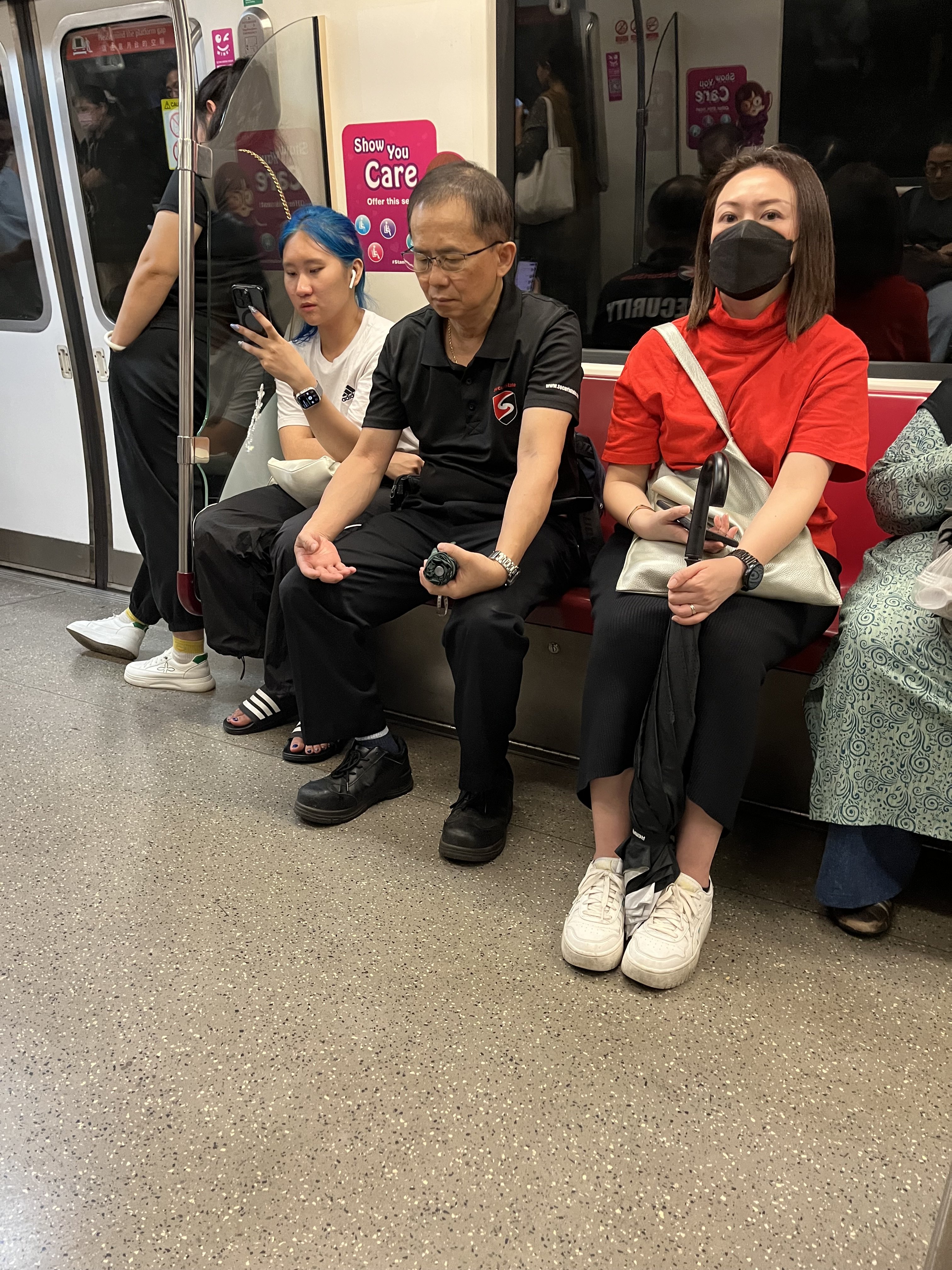 she doesn’t care a shit.Why was the young lady sitting at the "show you care" seat?