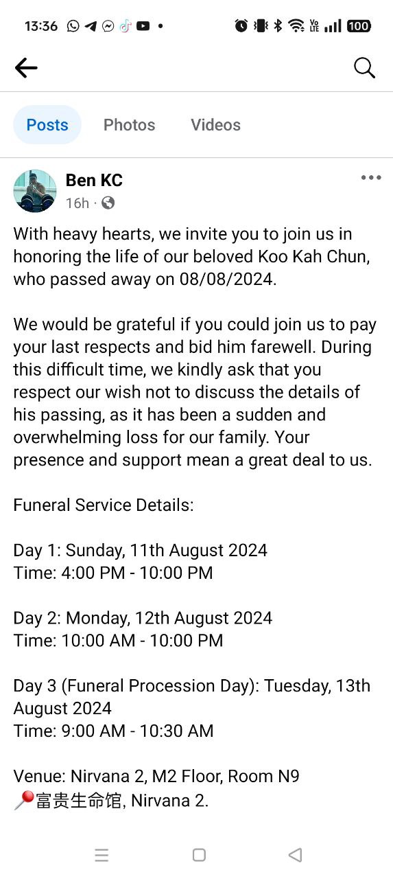 Exactly, keep on behaving like this and it means you deserve your fate more than ever."Respect our wish not to discuss the details of his passing...." looks like deep down inside, the family knows what happened but still in denial.......