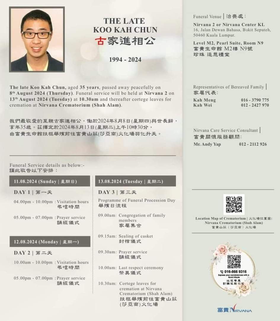 "Respect our wish not to discuss the details of his passing...." looks like deep down inside, the family knows what happened but still in denial.......