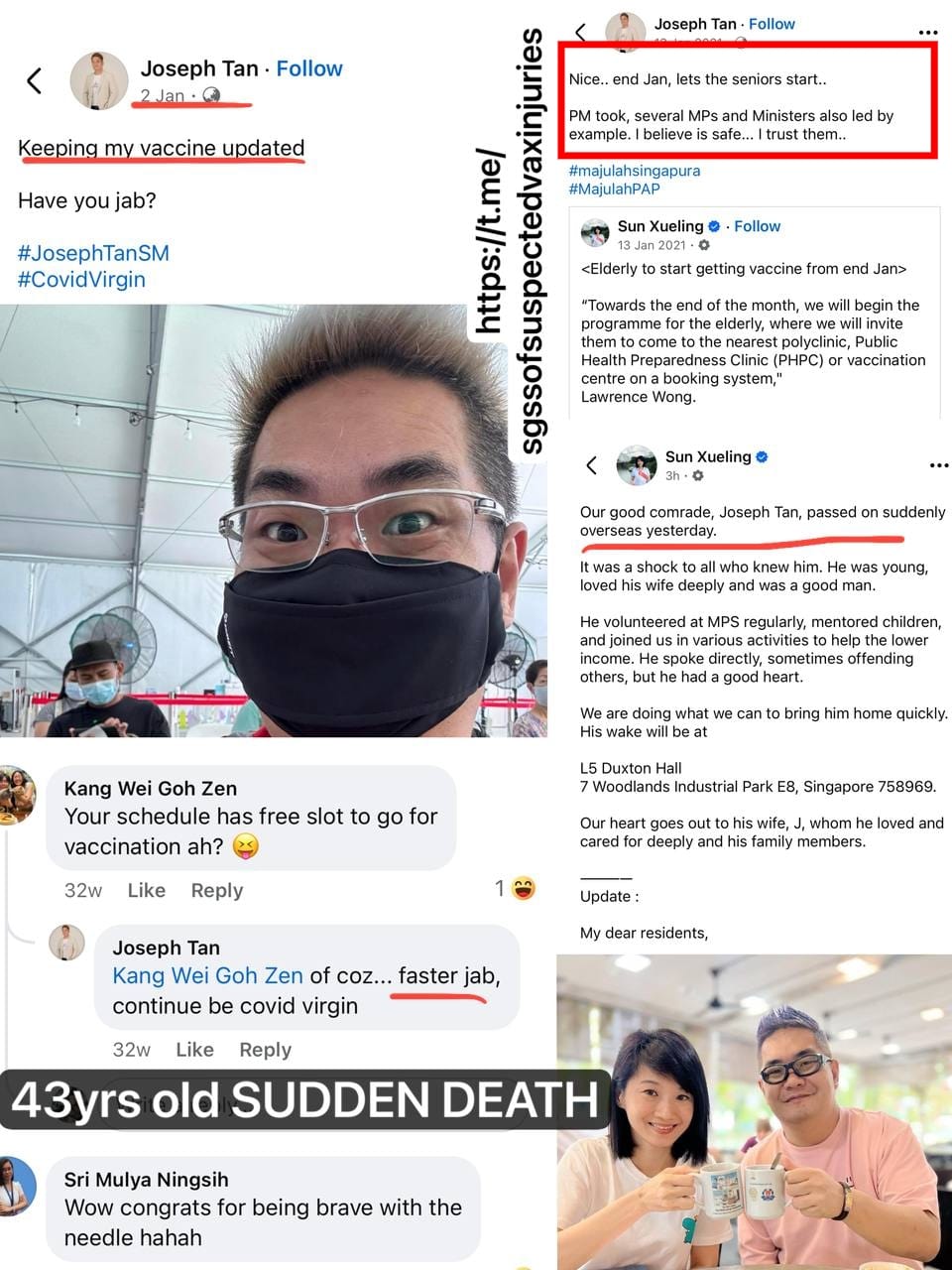 This is originally from the chinese press attributed to 8world. Knowing that Singaporeans are mostly angmoh pai, I used ChatGPT to translate this to English to tell you all that he is vaccinated, and although he died after a badminton match, no indication from the article that the exercise was especially strenuous, and he decided to stop after he got tired.
