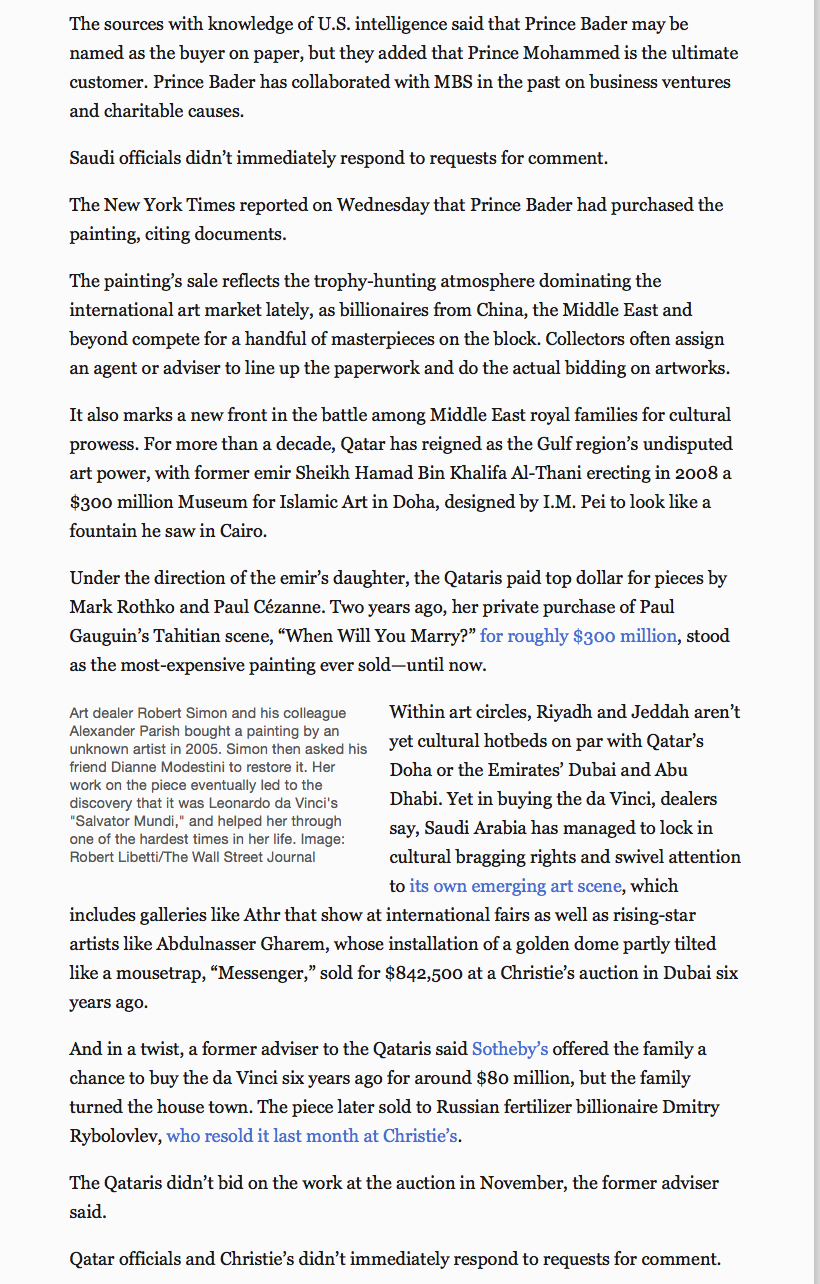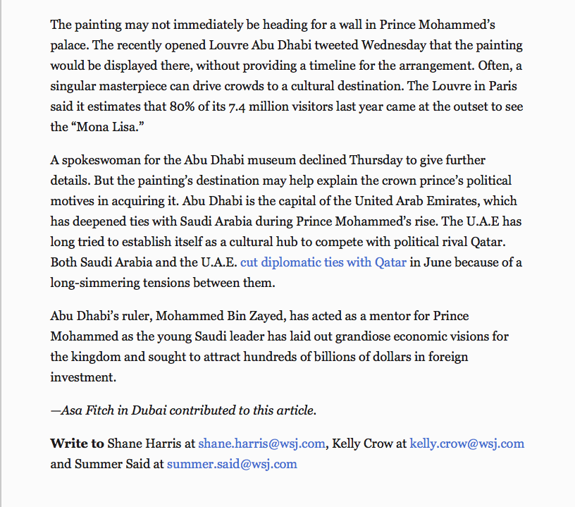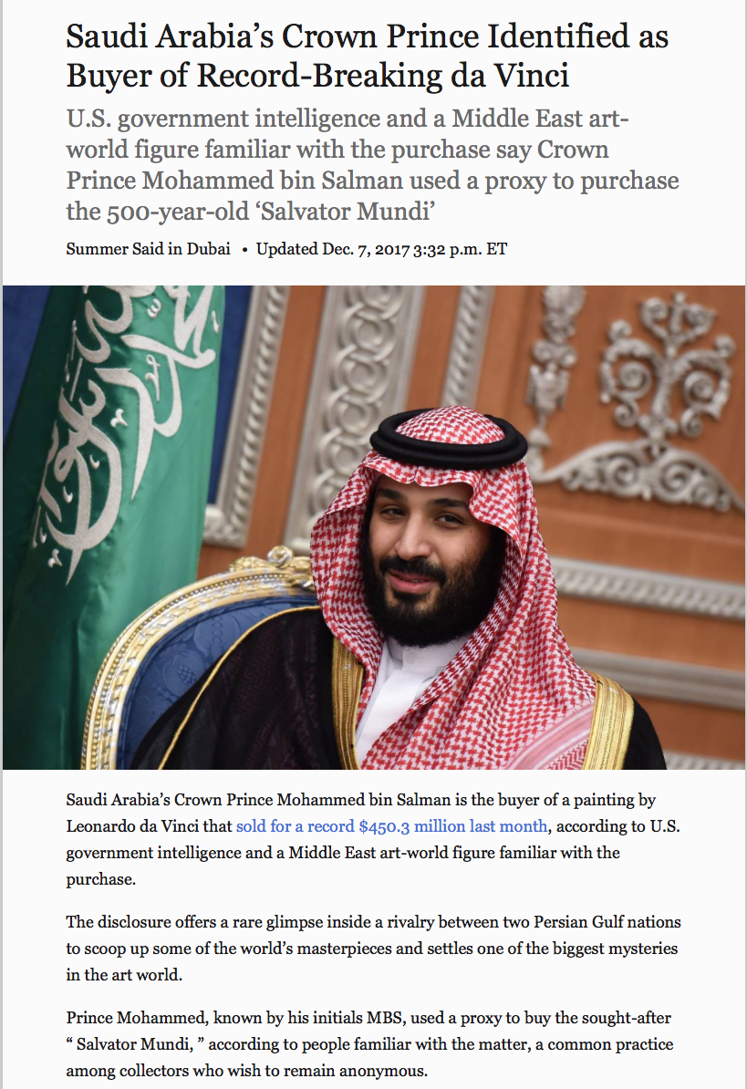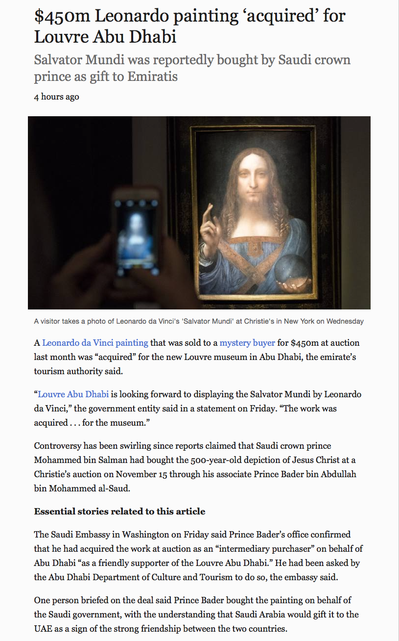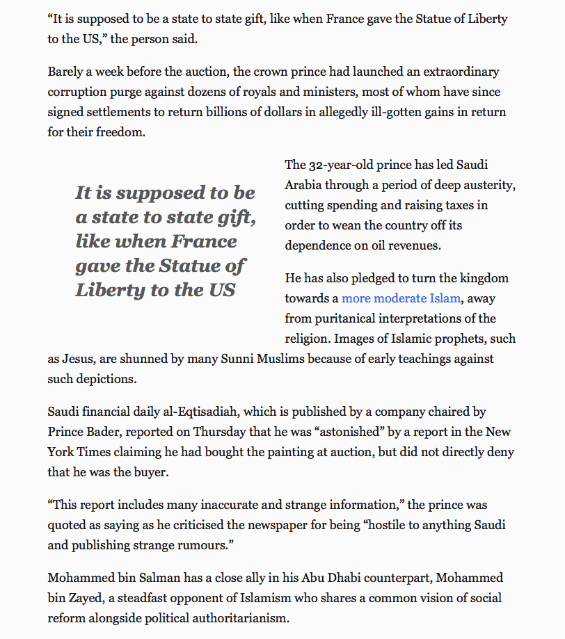 It has now gone from acquired by MBS to acquired by Abu Dhabi to acquired by KSA for Abu Dhabi as a "state gift" (in contradiction to the statement in the Abu Dhabi press and earlier KSA denials).