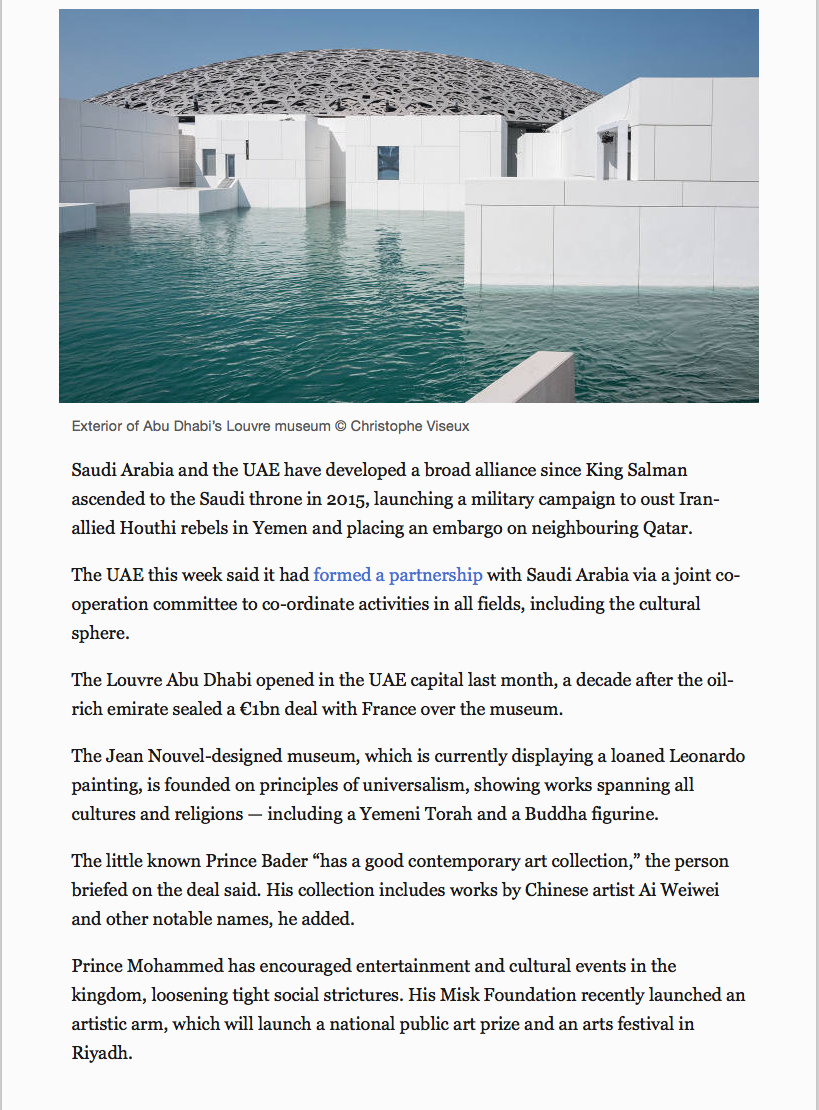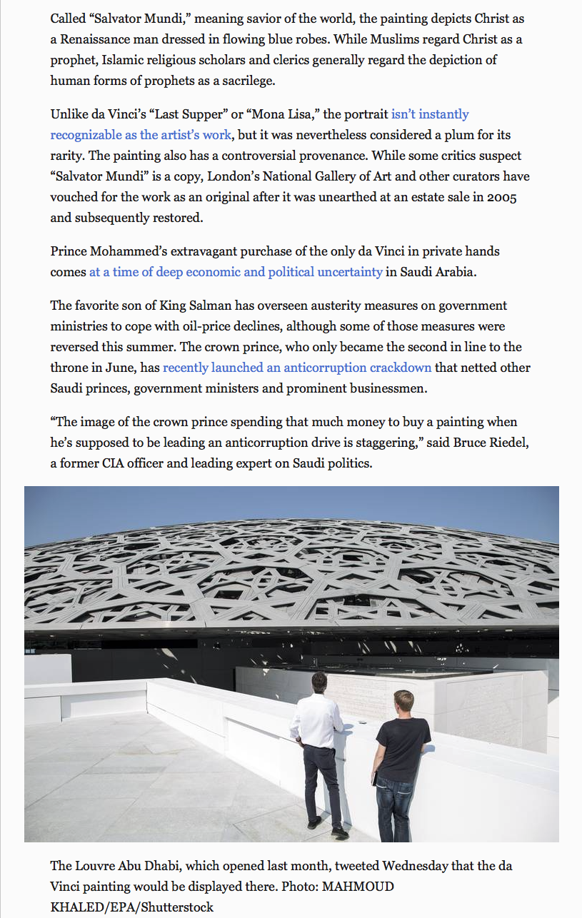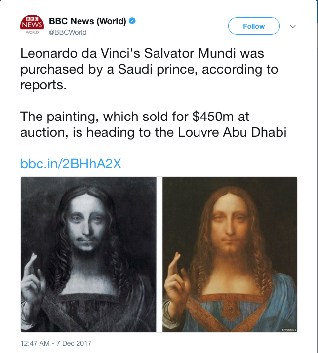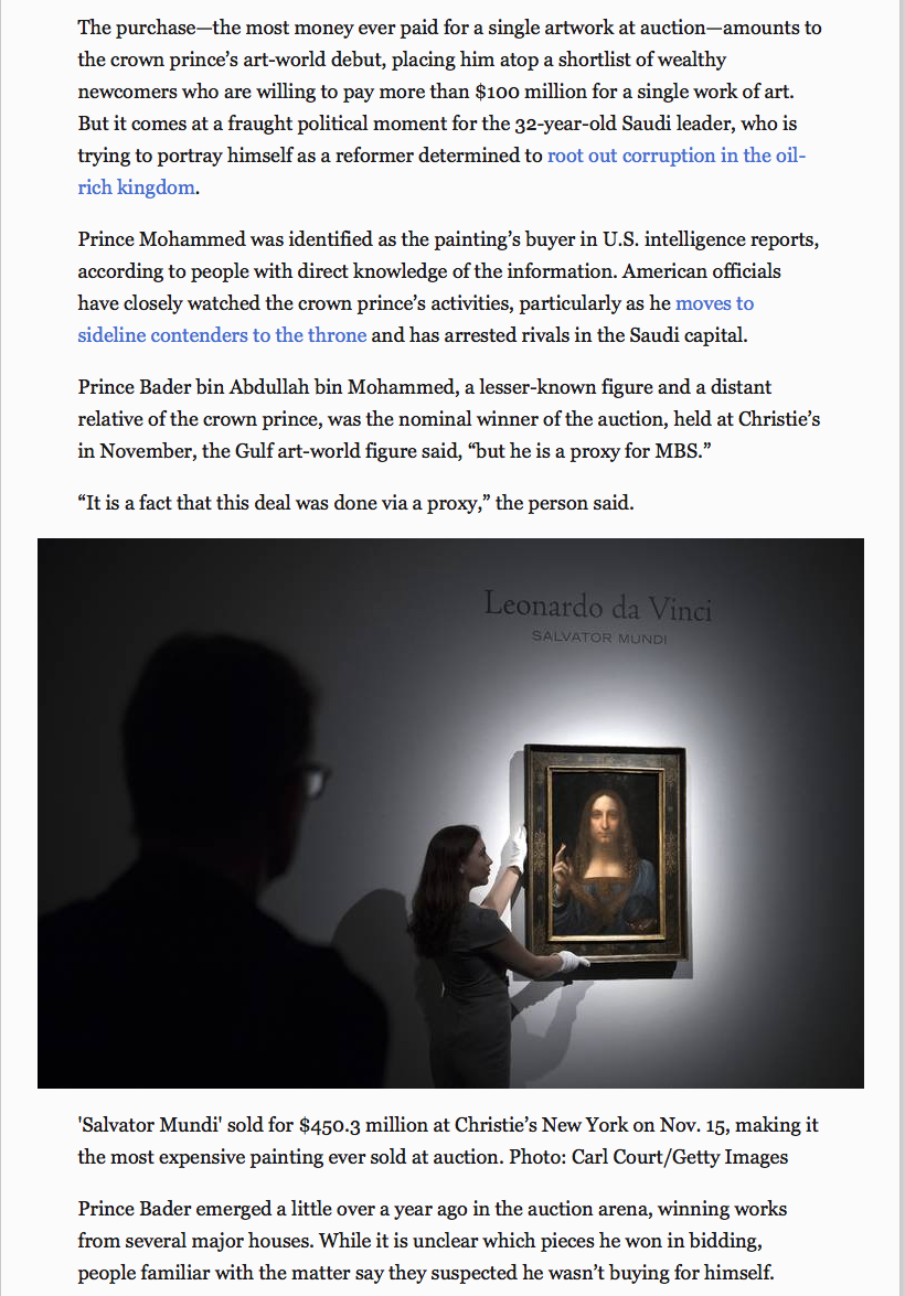 It has now gone from acquired by MBS to acquired by Abu Dhabi to acquired by KSA for Abu Dhabi as a "state gift" (in contradiction to the statement in the Abu Dhabi press and earlier KSA denials).
